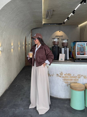 جاكيت خامته سويد (شمواه) ناعمة وشيك، بيدي لوك كاجوال أنيق ومناسب لكل الأوقات.